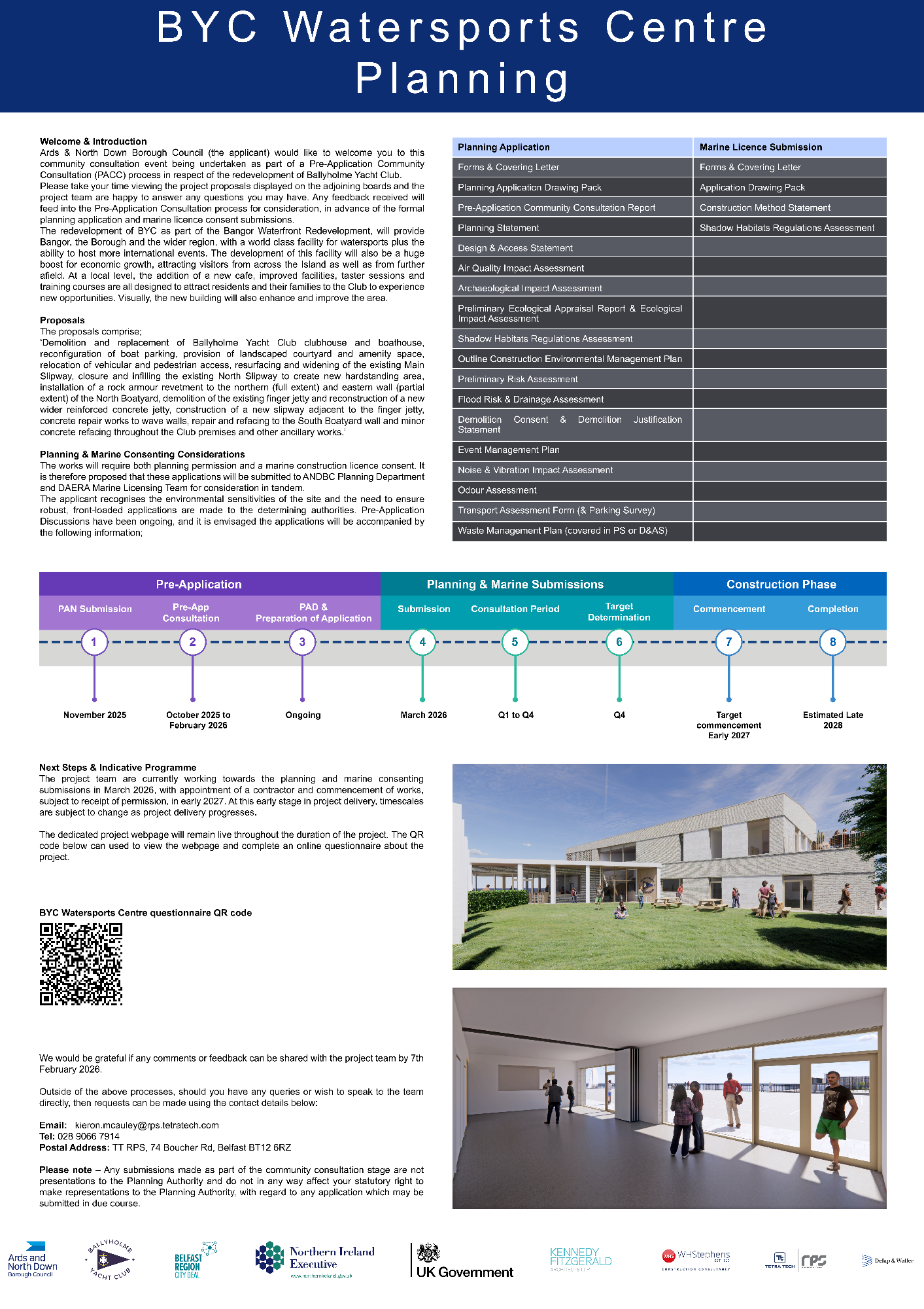 More information and a link to provide online feedback can be found here: Project: Ballyholme Yacht Club Watersports Centre