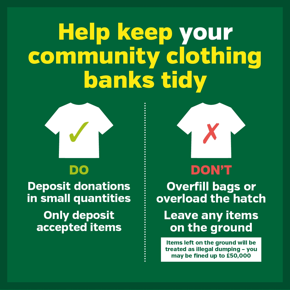 If a clothing bank is full, please contact 0300 013 3333 (select 1 then 2) or email recycling@ardsandnorthdown.gov.uk